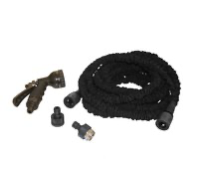 Vi har köpt Biltemas expanderbara vattenslang som dessutom är den som är mest förstärkt av dom vi hittat. Den är 5 meter och blir 15 meter i fullt läge, och väger typ ingenting.