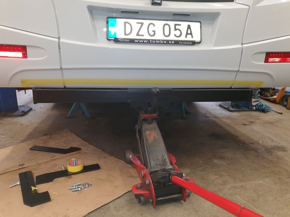 Dock fick vi veta, efter mycket om och men, att när man sätter på en dragkrok på husbilen så måste man registreringsbesikta husbilen för dragkrok inom 1 månad.
