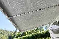 En bra investering till markisen är detta stormline set (GoCamp Stormsäkringsband Thule). Även en spännarm (Thule Rafter G2 Aluminium) i mitten på markisens undertak. Detta för att inte markisen ska kunna lägga sig på taket om de blåser mycket och knäcka markisarmarna. (De har vi sett på ett ställe vi stod på)