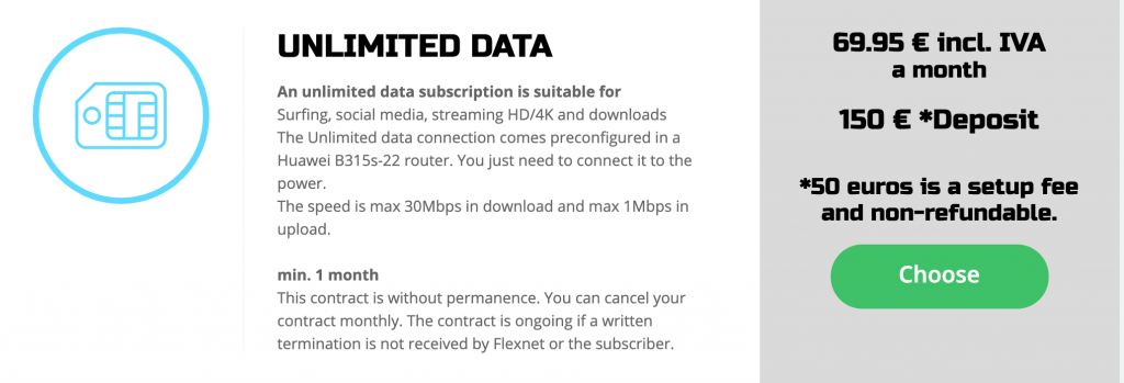 Nu har vi däremot skaffat ett Spanskt mobilt bredband ifrån Flexnet men eftersom Tommy har en massa Zoom möten via jobbet och uppladdningen var lite dålig på Unlimited, så skaffade vi även 400gb data roaming, som hade betydligt högre hastighet i uppladdning, så nu är vi rätt så safe 🙂
